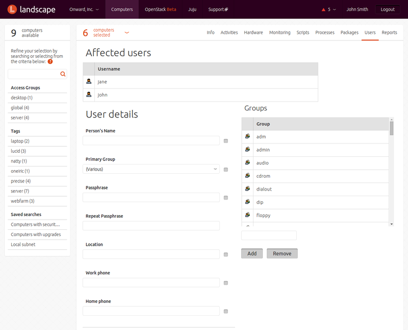 You may also tick a checkbox to delete the user's home folders as well. Press the button at the bottom of the screen to complete the operation.The button displays a User details screen that lets you change details such as the person's name, primary group, passphrase, location, and telephone numbers, and add or remove the user from groups on the selected computers.